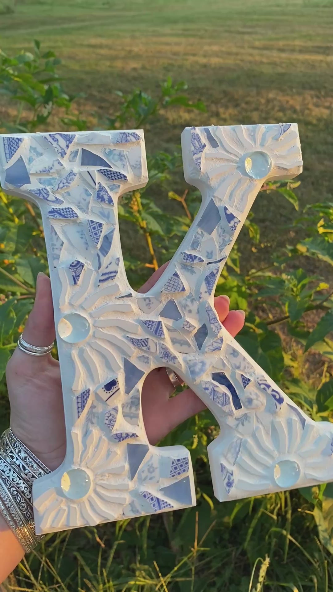 Add charm to your space with this custom mosaic letter! Every tile is carefully selected and placed, creating a completely unique statement piece.